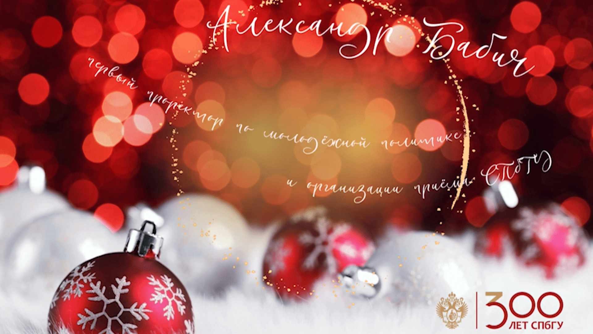 ?Медиацентр поздравляет всех универсантов с наступающим 2024 годом! ❄Для СПбГУ он будет особенным, ведь пройдет под знаком 300-летия университета. Желаем вам счастья, продуктивной учебы и работы, а также новых достижений во всех сферах жизни! ?Мы подготовили для вас серию поздравлений "Универсантам от универсантов". Первым вас поздравит Александр Бабич - первый проректор по молодежной политике и организации приема СПбГУ.