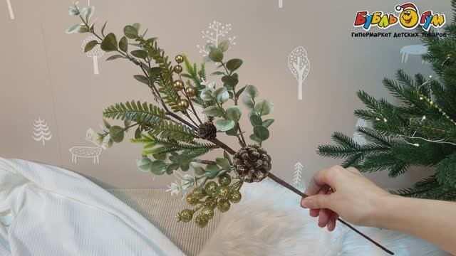 332415 Украшение декоративное Ветка хвойная с шишками и золотистыми ягодами 50см