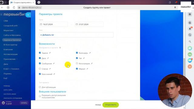 Урок 10. Создание группы/проекта в CRM Битрикс24 от компании «Первый Бит»