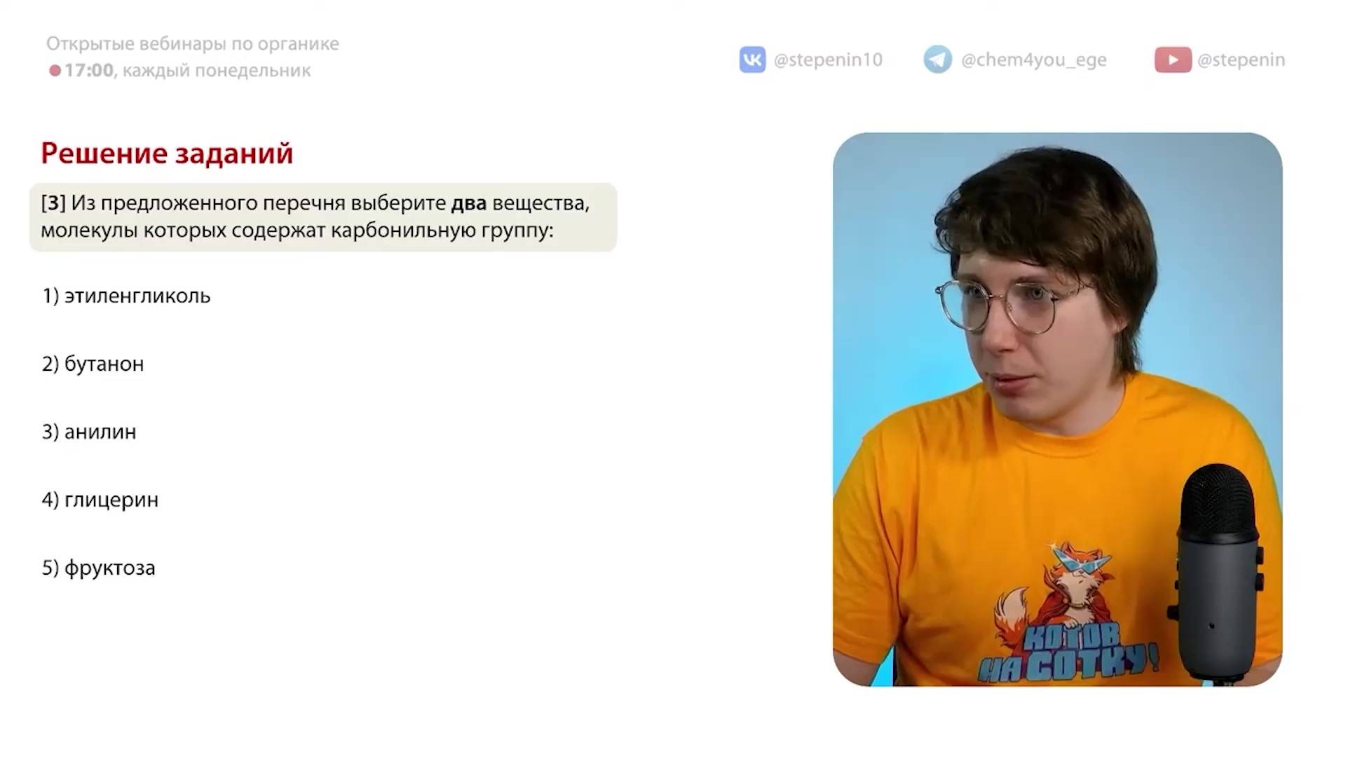 🧪 Подготовка к ЕГЭ по химии на самые высокие баллы на наших курсах: http://stepenin.ru Телефон Андрея Степенина: +7 926 625-73-33 📚 Много полезного образовательного контента на наших площадках База заданий (огромная): http://stepenin.ru/tasks Группа Химического кота (ЕГЭ по химии): https://vk.com/chem4you Группа для 10 класса: https://vk.com/stepenin10 Группа 9 класса: https://vk.com/chem4you_oge Группа ЕГЭ по биологии: https://vk.com/bio4yo