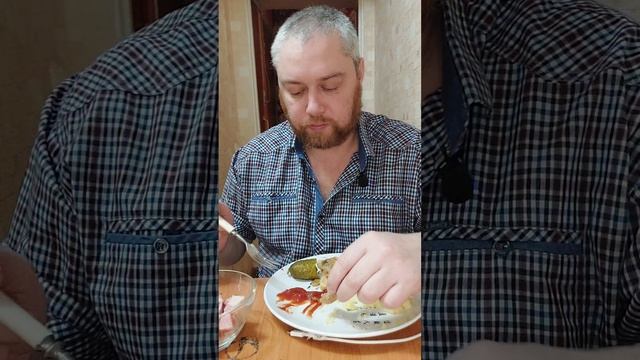На ужин: жареный судак с пюре и салат венгерский м огурцом. #мукбанг