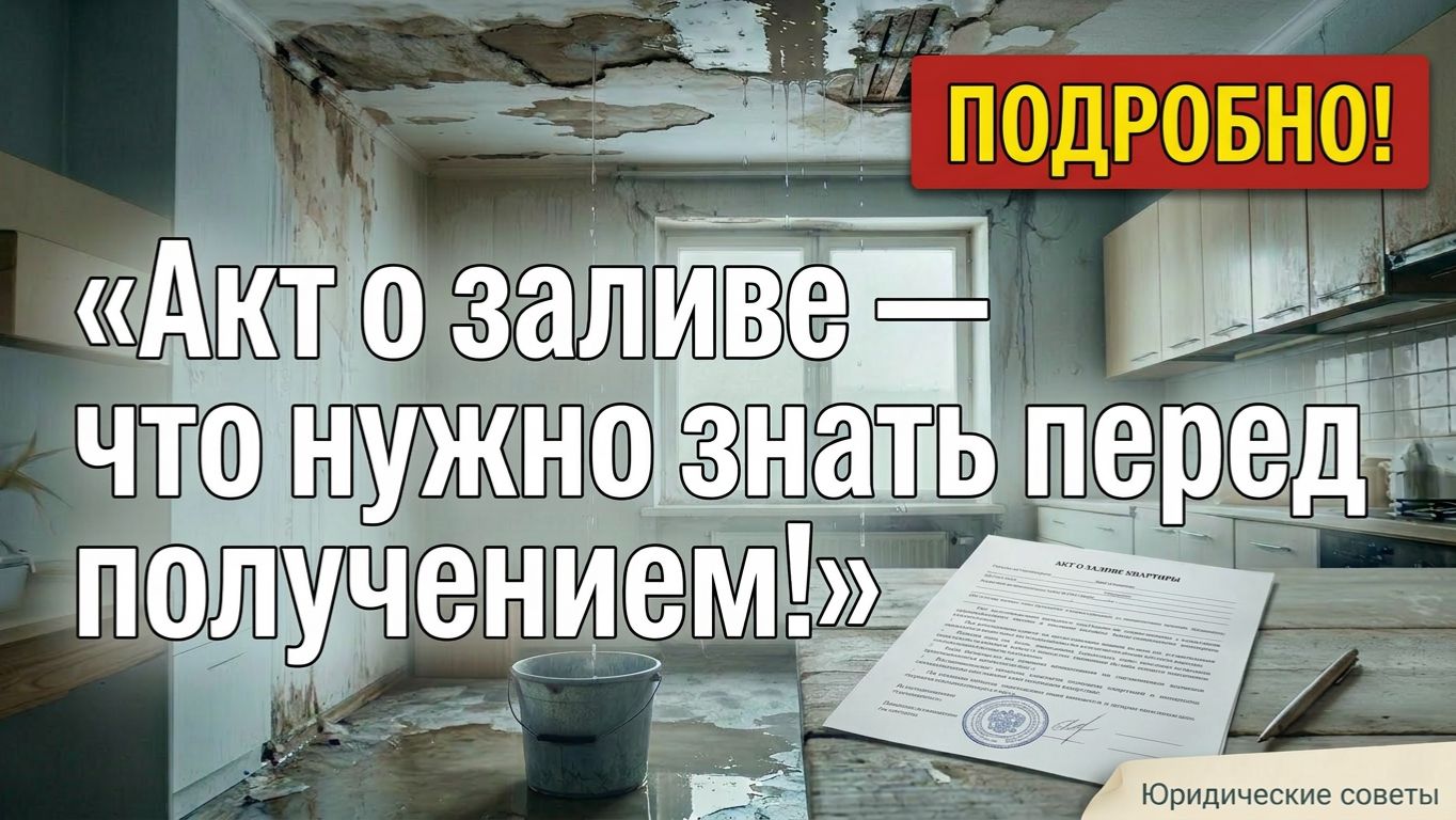 Этот ролик о том, как правильно получить и проверить Акт о заливе квартиры, чтобы потом без проблем взыскать ущерб. Из видео вы узнаете: – что такое акт о заливе и почему он является основным юридическим документом после затопления; – кто обязан его составлять и выдавать: управляющая компания, председатель ТСЖ или ЖСК; – в какие сроки по закону акт должен быть оформлен (12 часов после обращения в аварийно-диспетчерскую службу); – какие три пункта обязательно должны быть в акте: дата залива, полный перечень всех повреждений и точная причина протечки; – к каким последствиям приводит «сырой» или неправильно оформленный акт и как этого избежать; – куда можно обратиться за помощью, если вы живёте в Санкт-Петербурге или Москве и столкнулись с проблемами при получении акта о заливе.