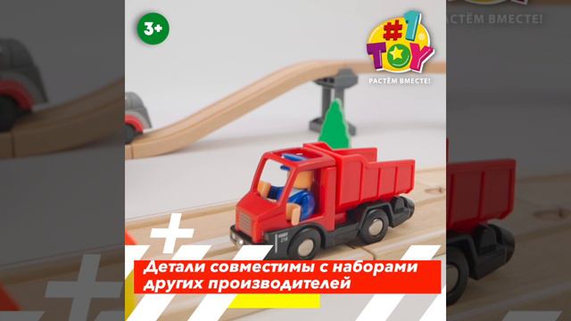 1TOY Goodok наб.ж\д с автодорогой "Осторожо, переезд!"с эл.локомотивом со светом,едет вперед,с тоннелем,переездом с 2 шлагбаумами,самосвалом,фиг.,35 д