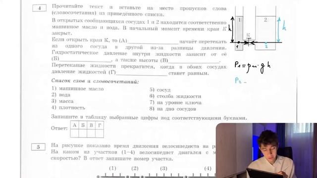 В открытых сообщающихся сосудах 1 и 2 находится соответственно машинное масло и вода. В - №20963