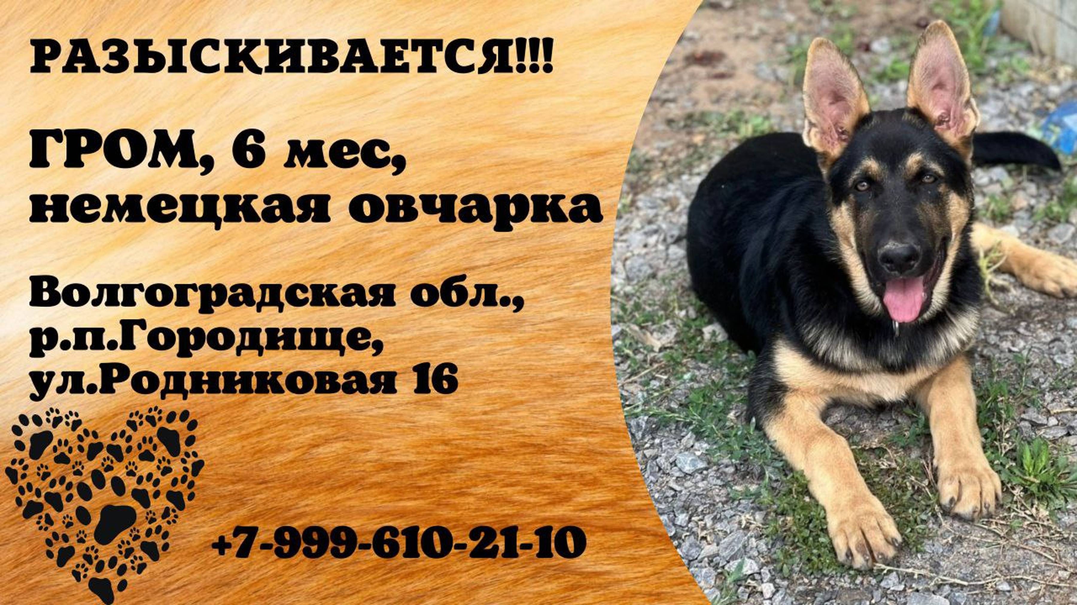 Пропала собака! ГРОМ. 6 мес. Немецкая овчарка. Волгоградская обл, р.п. Городище