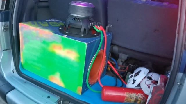 Сабвуфер Aura swc-124 xl + урал децибел 3500й в 2Ом в автобусе Toyota Town Ace Noah результат 145дб+
