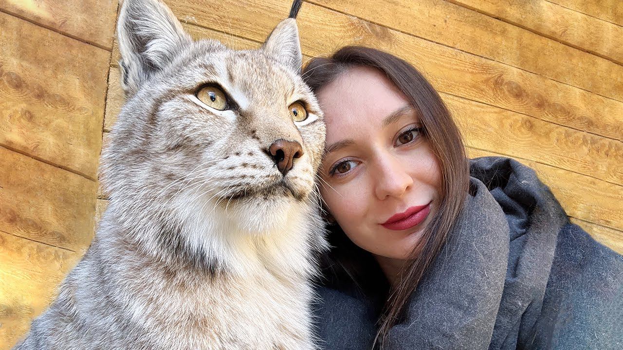 Рысь Симба показал свой настоящий голос / Ласки с рысями и енотом