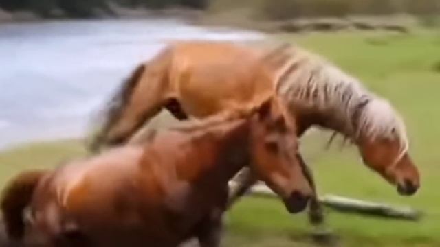 Табун лошадей переходил через реку... Вдруг один жеребёнок отстал от матери и остался один... Кобыла вместе с жеребцом - вожаком табуна вернулись за малышом.. Все трое благополучно перешли на другой берег реки. Молодцы лошадиные родители! #природа #любовь #лошади