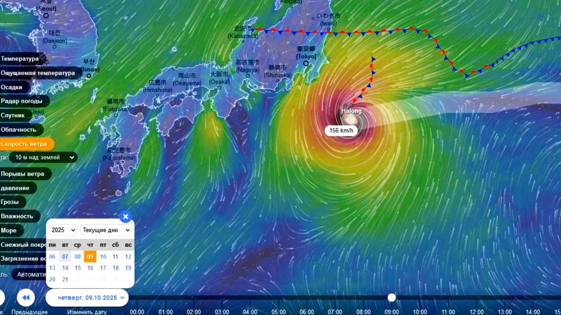 Тайфун Halong пройдет около Японии 8 и 9 октября. Прогноз погоды