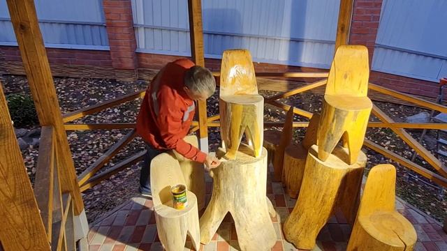 Стол, стулья из ствола ели. Своими руками. Не дорого. За 3 дня. В доме и на дачи Ландшафтный дизайн