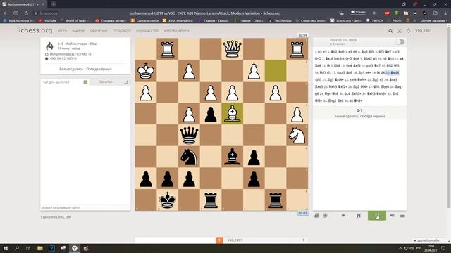 Шахматы. Дебют Ларсена 1.в2-в3. Блиц.Использование ослабления королевского фланга.Замес,что надо!!!