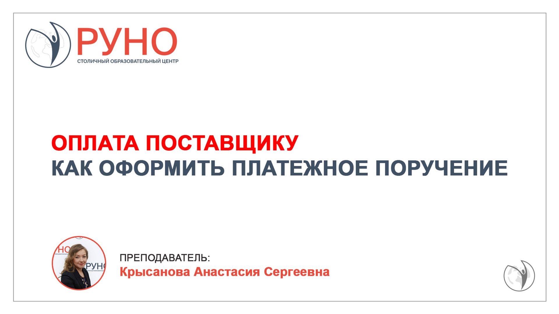 Оплата поставщику. Как оформить платежное поручение I Крысанова Анастасия. РУНО