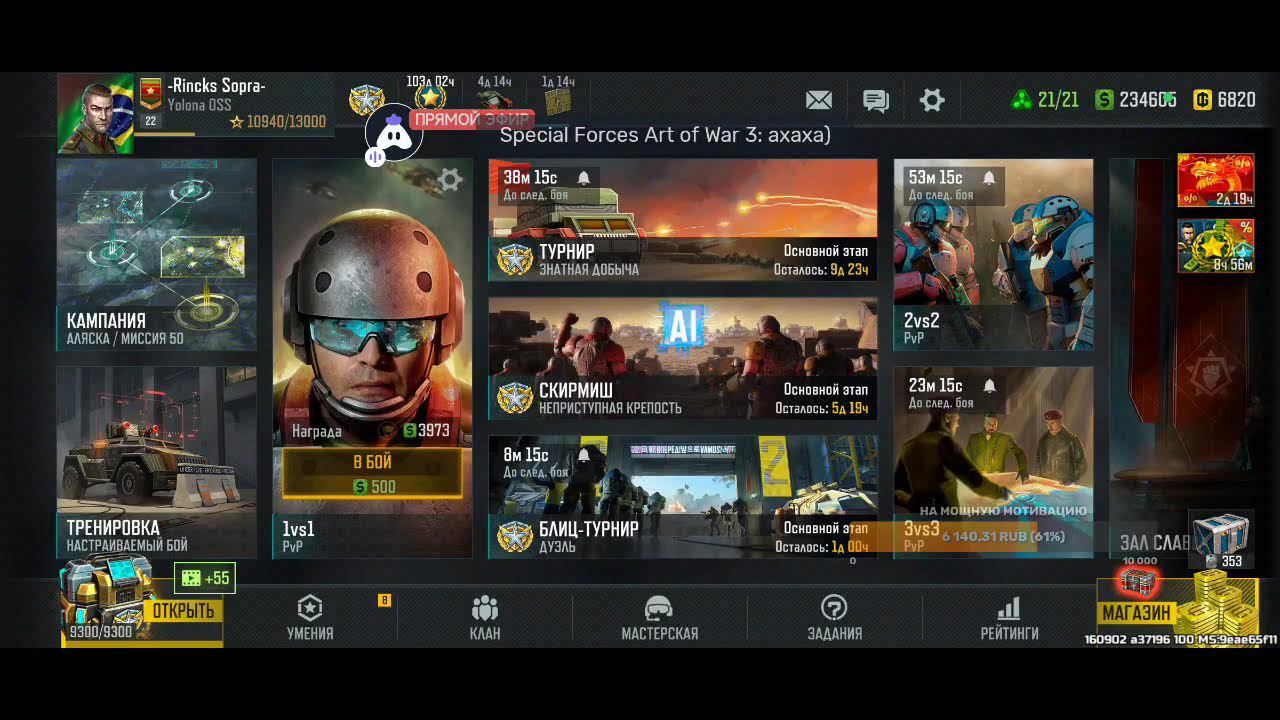 Поддержка автора по ссылке: https://www.donationalerts.com/r/rincks райффазен банк 2200 3005 1695 5281 телеграм группа для подписчиков https://t.me/art_of_war_3_rincks_sopra Продлить стрим:300 руб Смена фракции:200 руб Тренировка:300 руб 2х2: по совести Покажи кач: миллион рублей Закончить стрим:1000 руб Так же можно заказать челлендж. тоесть дать стримеру задание за определенную сумму. Например: сыграть только авиацией или вообще без неё,ну и так далее. Ссылка на игру: Долго искал настоящую стратежку на телефон, как старкрафт. Наконец нашел Art of War 3! Очень крутая игра! Вот ссылка, качай, тебе понравится: https://redirect.appmetrica.yandex.com/serve/169878688668608468?recruiter_id=1111515909