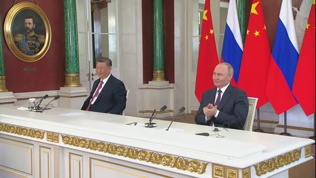 Владимир Путин и Председатель КНР Си Цзиньпин выступили с заявлениями для прессы, Москва 8 мая 2025