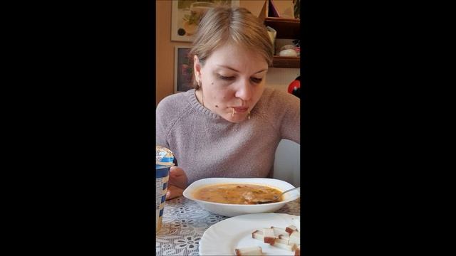 Мукбанг. Борщ (щи) с квашеной капустой и салом