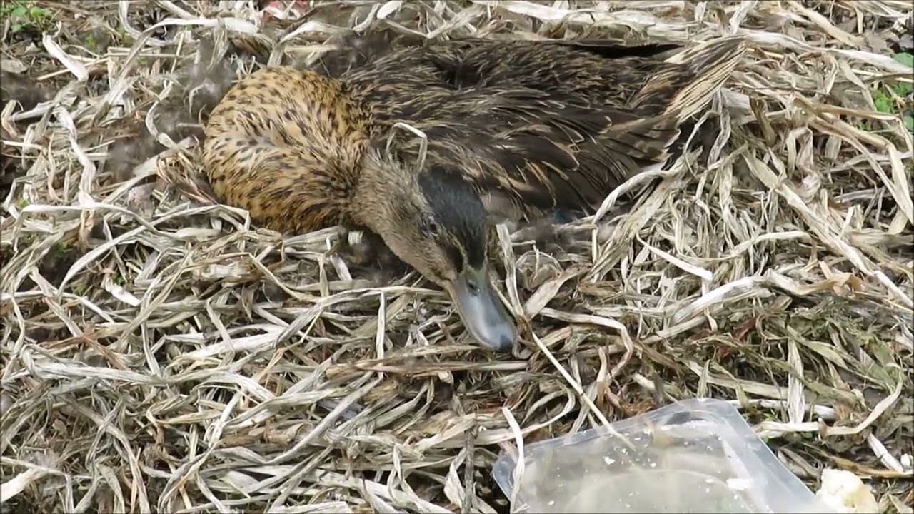 Уточка сидит на гнезде, а её сородичи летают и ходят по всему зоопарку 17.05.2023