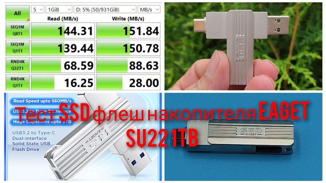 Тест SSD флеш накопителя EAGET SU22 1TB SSD flash drive test