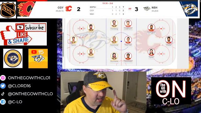 Support the stream: https://streamlabs.com/cloproductions1 Live NHL Hockey Nashville Predators vs Calgary Flames. Live from the Bridgestone Arena in Nashville, TN. The Nashville Predators try to stay on top of the Wild Card Standings in the hunt of the Stanley Cup Playoffs. #nashvillepredators #NHL #nashvegas #nhlhockey #nhllivehockey #nhlpreds #calgaryflames #calgaryflameshockey #wild #nashvillevscalgary #calgaryvsnashville #minnesotawildvsnashvillepredators #predatorsvswild #wildvspredators #youtubelivestream Follow along with me as I take you along on our adventures. From Tennessee to Florida and wherever the road may take us. Not only will we have the occasional vlog. We will live stream also. From an event or just a good ole gaming Stream live on Twitch! Make sure you 👍 the vlog or stream. If you are new, please think about subscribing to our channel. I hope you enjoy the show! You can follow me: Tik Tok- https://vm.tiktok.com/TTPdh8sfAg/ Youtube- https://youtube.com/channel/UCTqxWn4_0wsTAJLkSHdaYUg Twitch- https://www.twitch.tv/on_the_go_with_clo?sr=a Twitter: https://twitter.com/CLord16?t=SyCEfg1MCmrQ3ZvsiIgMng&s=09 Instagram: https://www.instagram.com/p/Canncens_Bv/?utm_medium=share_sheet If you would like to support the channel Venmo: https://venmo.com/C-Lord-16 Pay Pal- https://www.paypal.me/OnthegowithCLo