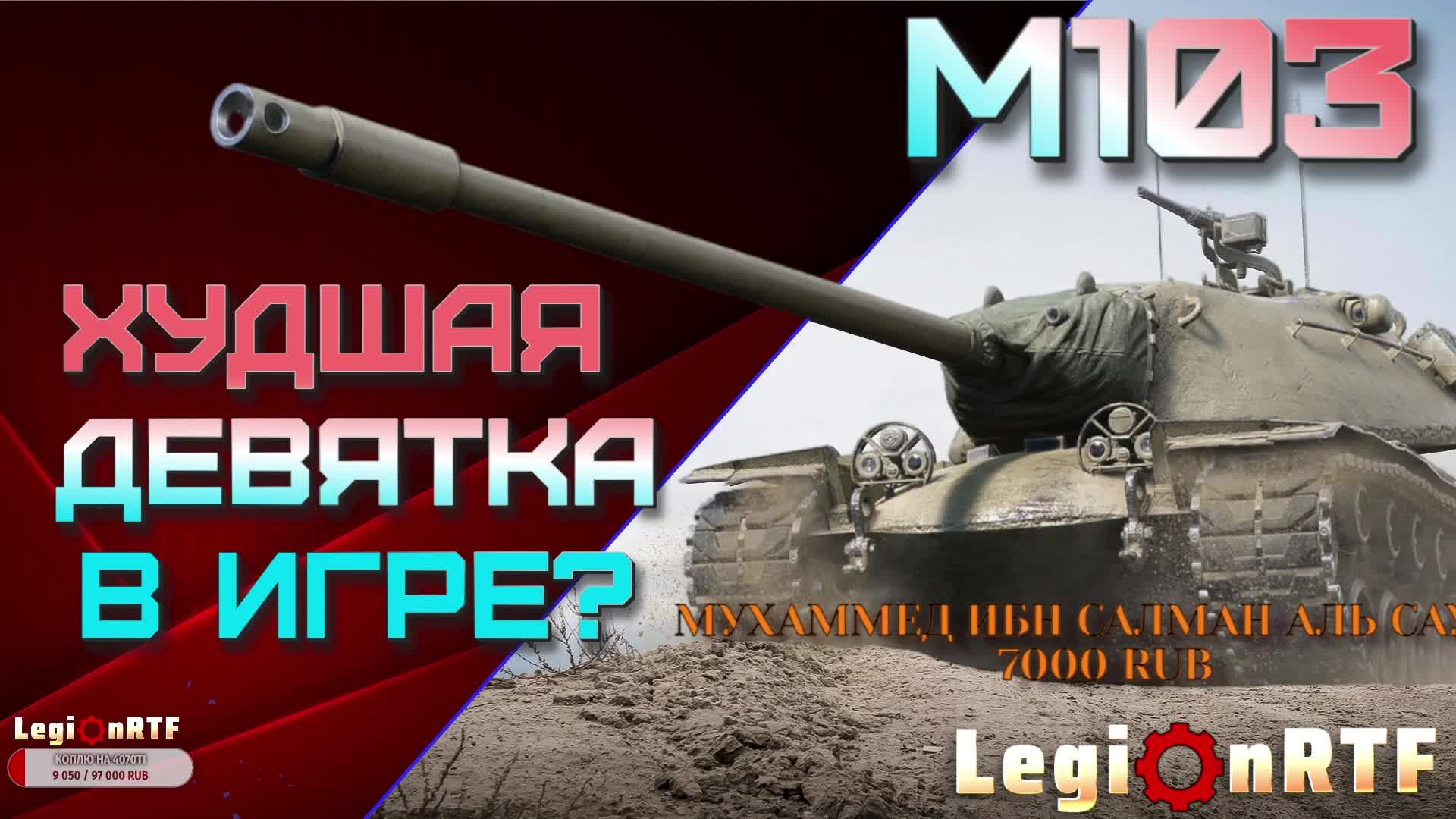 ✅ Поддержи выход стримов на канале 🔶 https://www.donationalerts.ru/r/legionrtf 🔶 ✅ Альтернативная страница поддержки стримера 🔷 https://new.donatepay.ru/@Legion_FC 🔷 ✅ Карта Сбер 4276 3800 2542 1947 📰 Актуальное расписание стримов есть на моем канале в дискорде, на момент выхода стрима: 📋 - cтримы каждый день в 21 30 кроме: 📋 - понедельник, пятница выходной; 📌 М103. Худшая девятка тт в игре? Мир танков. 📌 Издевательство над стримером: ✅ Сыграть взводом/пати - для подписчиков бесплатно, для остальных - 100р. ✅ Сыграть на технике или с другими условиями по заявке (если есть) - 100р. ✅ Задушевная беседа - 200р. ✅ Дать совет в сложной ситуации (без политики) - 300р. ✅ Сыграть в игру которая мне нравится (1-2 стрима) - стоимость игры + 400р. ✅ Продлить стрим на час (не больше 2 часов, если будет перебор то переносится на след стрим) - 500р. ✅ Закончить мучение (стрим) на сегодня (после конца боя) - 500р. ✅ Включить камеру - 1000р. ✅ Выключить камеру - 1000р. ✅ Сыграть в игру которая мне не нравится (1-2 стрима) - стоимость игры + 1000р. ✅ Сыграть в любой ХОРРОР (1-2 стрима) - стоимость игры + 5000р. ✅ Полное прохождение игры - прайс игры на 1-2 стрима + 2000р. ✅ Спеть песню (пою ужасно) - 50000р. ✅ ютуб - https://www.youtube.com/channel/UCXmI6uklOSpq6Ax9vp4jnUw ✅ рутуб - https://rutube.ru/channel/27489977/ больше розыгрышей голды и стримов ✅ vk live - https://live.vkvideo.ru/legionrtf_ ✅ дискорд - https://discord.gg/wbxbQHve5Z или добавляйтесь в друзья к wittem 📝 почта для связи - youshallnotpass1981@gmail.com 📌 Всем привет, зовут меня Евгений. На канале играю в игры в прямом эфире. Делюсь с вами хорошим настроением и жду всех в гости на канал. Могу рассмотреть варианты прохождения игр вместе. Буду рад лайкам и подписке! #сезонконтентаRUTUBE