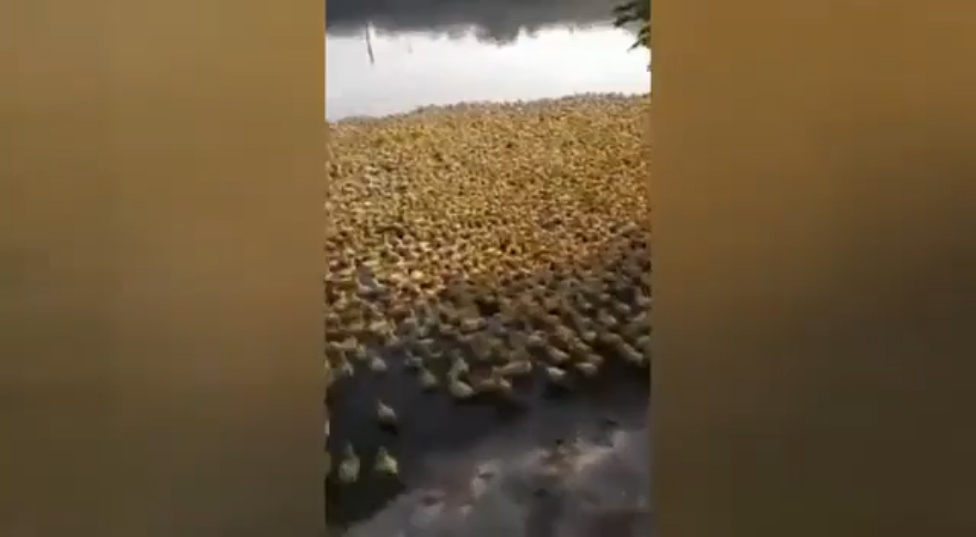Тысячи маленьких утят впервые бегут к воде в китайском озере, еще не подозревая, какая в Китае фиговая экология)