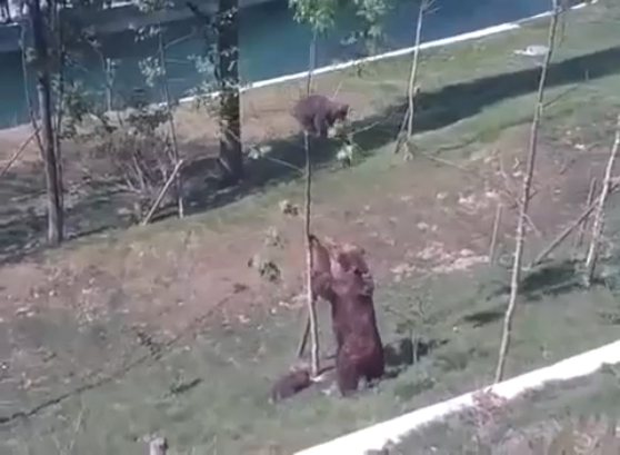Смешные животные: медведица пытается снять медвежонка