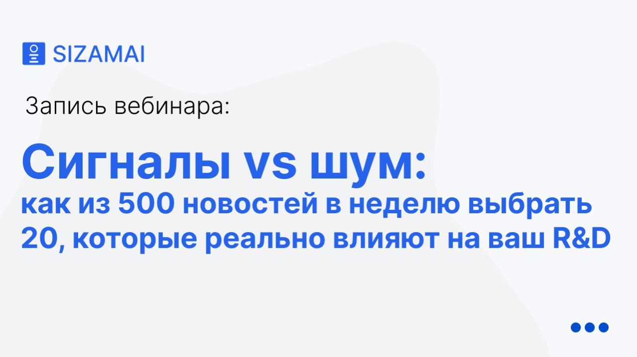 Практическая демонстрация работы платформы SIZAMAI для специалистов НИОКР, инженеров и аналитиков, работающих с массивами научно-технической информации. На вебинаре 19 марта 2026 года разобрали, как перейти от ручного мониторинга сотен источников к автоматизированной системе и находить действительно важные технические сигналы среди бесконечного информационного шума. В рамках вебинара рассмотрели ключевые сценарии работы: — Информационная перегрузка: почему ручной поиск больше не работает и на чем исследовательские команды теряют время — Новостной ИИ-агент: как настроить автоматический сбор релевантных технологических событий со всего мира, обходя блокировки и не используя VPN — Тематические подборки: поиск научных публикаций в мировых базах (Elsevier, Springer и др.) с помощью искусственного интеллекта под конкретные задачи — Контроль изменений: как система сама отслеживает обновление зарубежных стандартов (ISO, ASTM и др.) и присылает уведомления о новых редакциях — Единое рабочее окно: формирование персональной ленты, где все нужные инженеру сигналы собираются в одном месте 📞 Нужна помощь или хотите обсудить внедрение? Если Вы хотите подробно разобрать, как SIZAMAI поможет решить задачи именно Вашей компании, позвоните по телефону: 8 (800) 550-56-57 или оставьте заявку на нашем сайте: https://vk.cc/cUHaCM