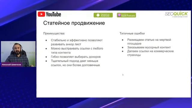 Тема: "Линкбилдинг в 2021: обзор актуальных стратегий для белого бизнеса". Николай Шмичков — директор по управлению проектами SEOQUICK. Занимается рекламой с 2007 года. Главный редактор блога SEOQUICK. В программе: * Социальные программы; * Справочники; * Сайты поиска работы; * СМИ; * Гостевой постинг. ✅ Записаться на курс по SEO-продвижению сайта: https://institute.yagla.ru/seo Повышайте отдачу от контекстной рекламы с помощью сервиса Yagla -﹥ https://yagla.ru/ Добавляйтесь в наши социальные сети: VK -﹥ https://vk.com/multilanding YouTube -﹥ https://www.youtube.com/c/YaglaRuOnline Telegram -﹥ https://t.me/yagla