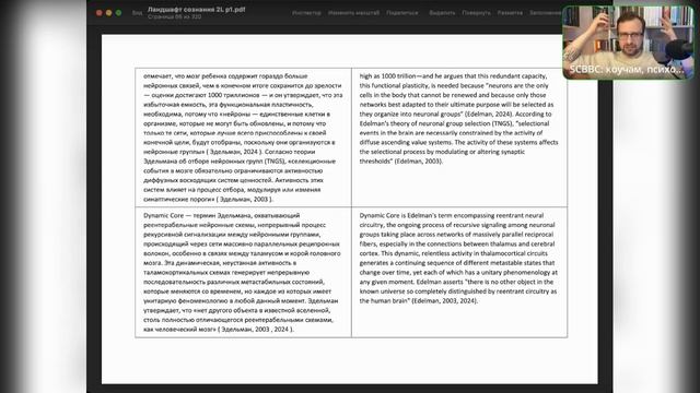 Читаем статью Robert Lawrence Kuhn (2024), «A landscape of consciousness: Toward a taxonomy of explanations and implications» / Progress in Biophysics and Molecular Biology 190: pp. 28–169. https://doi.org/10.1016/j.pbiomolbio.2023.12.003 Разобрал первый раздел в группе нейробиологических теорий сознания: 9.2.1. Нейронный дарвинизм Эдельмана и реципрокные нейронные цепи Хост — Алексей Ёжиков, клинический психолог, executive-коуч, руководитель школы когнитивно-поведенческого бизнес-коучинга SCBBC (https://scbbc.ru). Подпишитесь на телеграм-канал школы, чтобы смотреть прямые эфиры: https://t.me/scbbc_ru