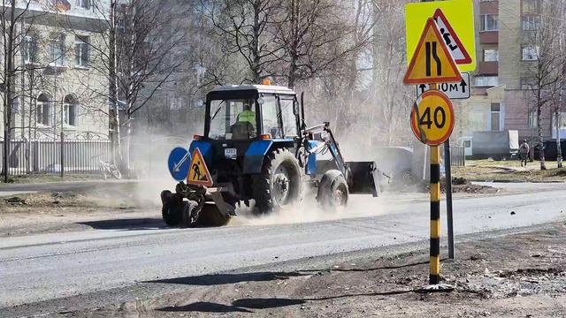 Зачем соблюдать правила благоустройства, если есть просто трактор с щёткой? Намочить- это никому не нужно, пусть дышать пылью и грязью эти людишки. #короткоиподелу #михаилшишов #архангельскаяобласть