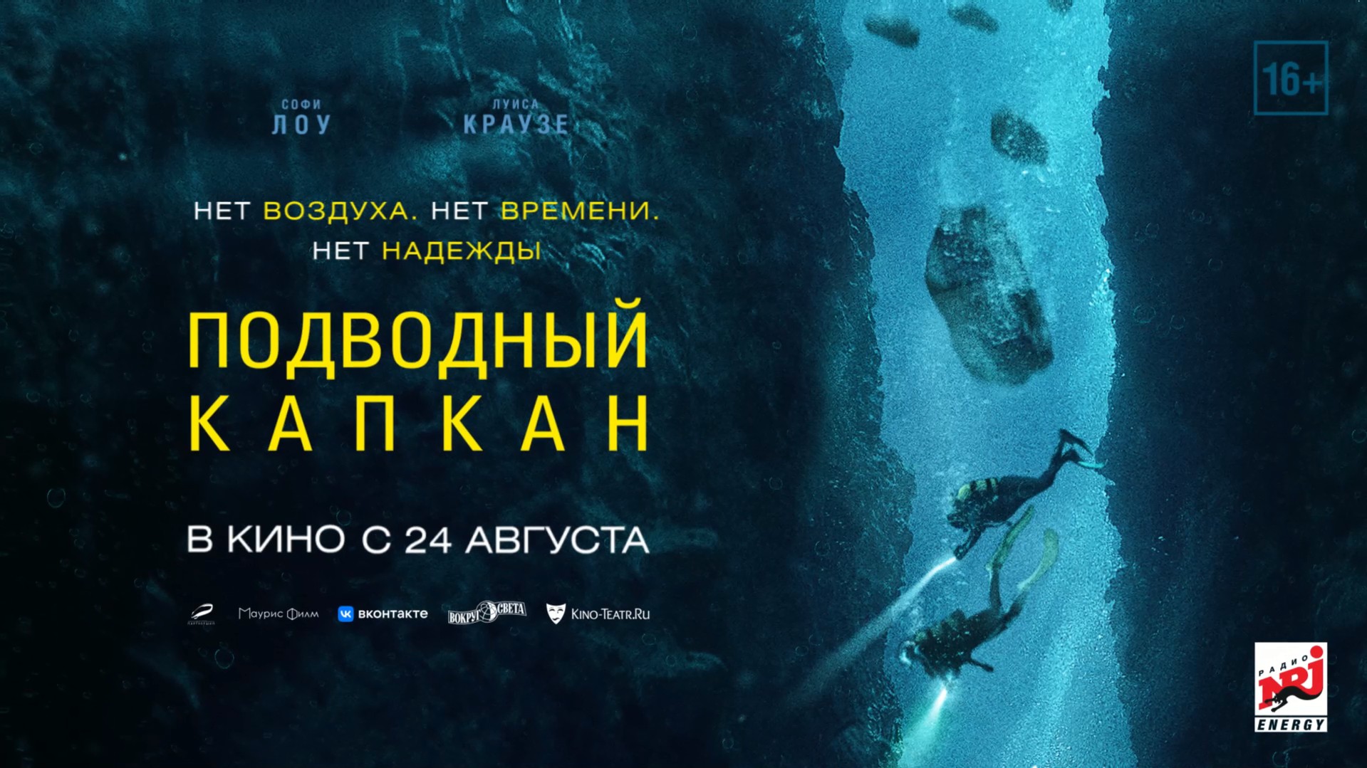 Сестры-дайверы Дрю и Мэй совершают традиционное совместное погружение в новом месте, в отдаленном полудиком уголке, и даже не представляют, с чем им придется столкнуться. Камнепад заточает Мэй в смертельную подводную ловушку, и времени нет: кислород на исходе, паника нарастает… Дрю может рассчитывать только на себя и вынуждена принимать роковые решения, чтобы попытаться спасти сестру любой ценой. На глубине страха остается только надежда...