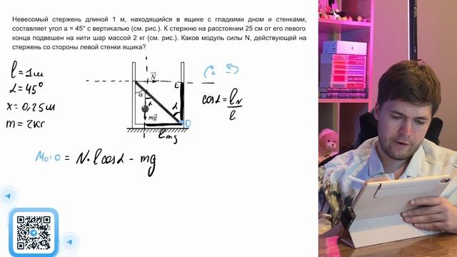Невесомый стержень длиной 1 м, находящийся в ящике с гладкими дном и стенками, составляет - №40081