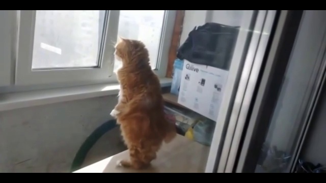 Кот следит за двором
