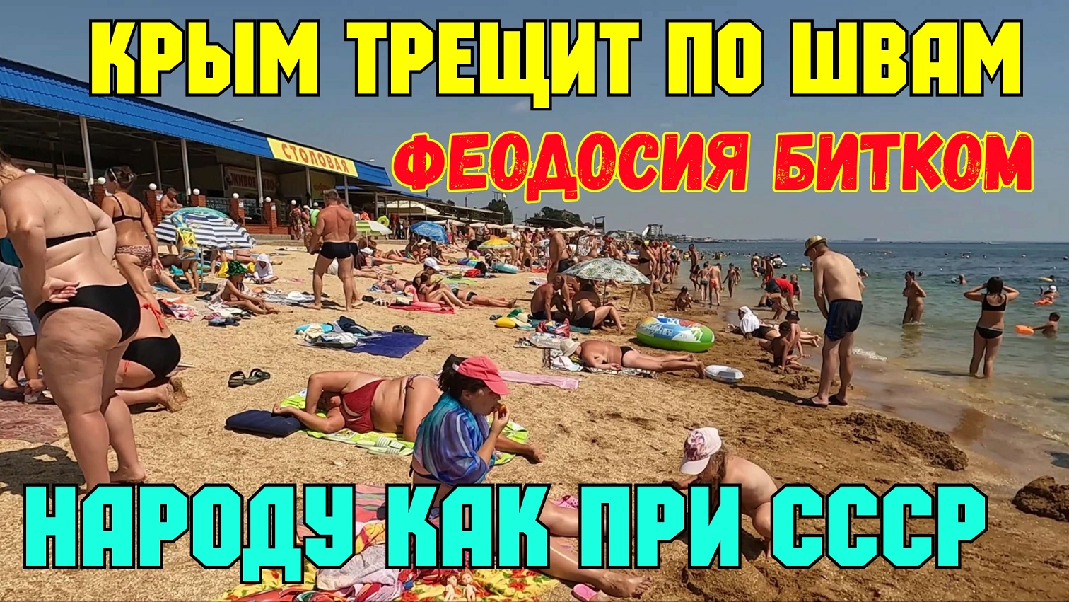 Крым.Что натворили в ФЕОДОСИИ.Лучший пляж ЧЕРНОМОРСКИЙ НАБИТ отдыхающими.Лежачих мест нет.АНШЛАГ