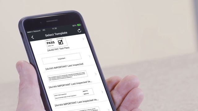 Štítky pravidelné inspekce a tisk v mobilní aplikaci - PT-E550WVP