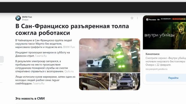 В Сан-Франциско разъяренная толпа сожгла роботакси