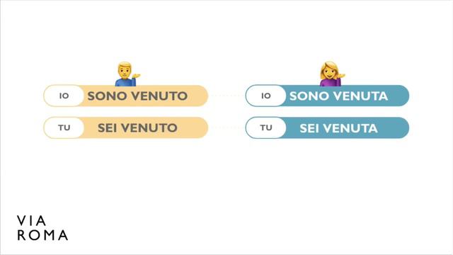 Buongiorno💙 Продолжаем серию коротких видео для запоминания спряжения неправильных глаголов. Слушайте, смотрите и повторяйте за преподавателем :) Сегодня мы поговорим о глаголе VENIRE. В прошедшем времени он спрягается с глаголом essere, а значит нужно быть внимательным в выборе окончания. Мы добавили к объяснению эмодзи “девочка” и “мальчик”, чтобы вам было понятно, в чем разница между sono venuto и sono venuta. Приятного просмотра! Ваша школа итальянского языка Via Roma