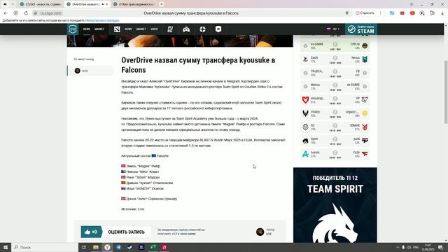 News Overview Counter Strike 2: Овердрайв назвал сумму трансфера Кийосаки