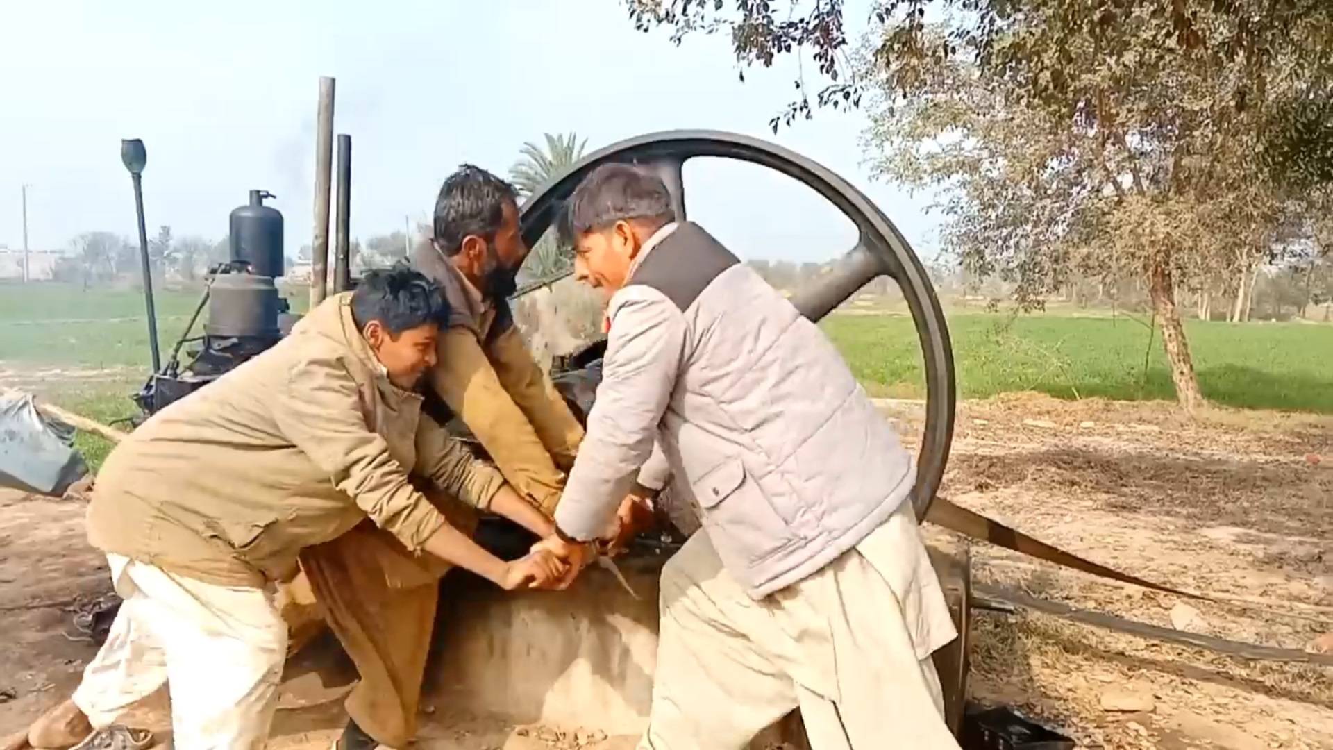 Пакистанцы втроем запускают ДИЗЕЛЬ 1938 года для хозяйственных нужд