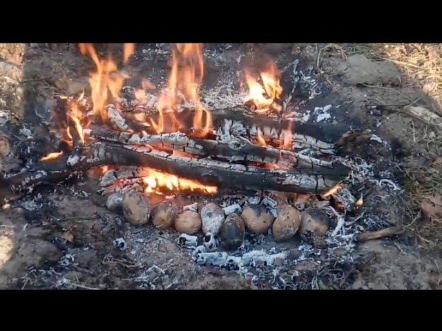 Отдых в лесу.Сальцо и картошка печёники на костре.