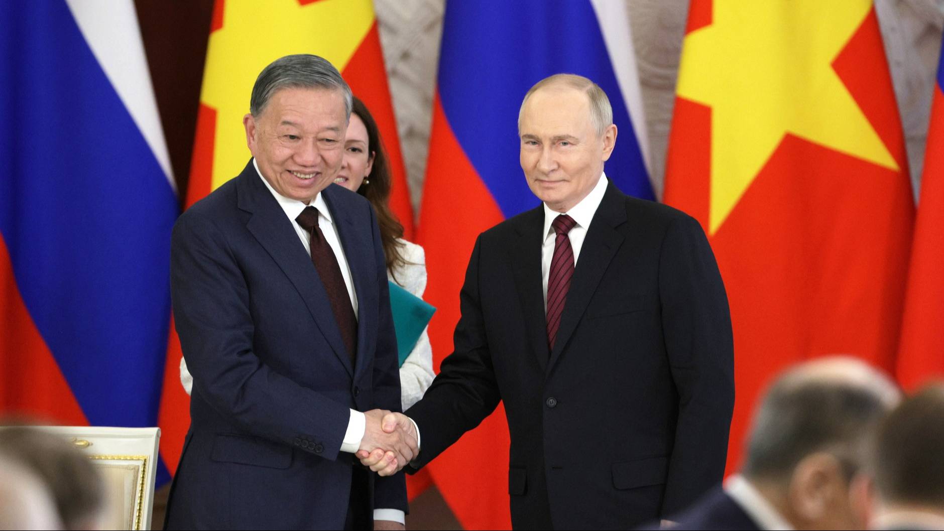 По итогам российско-вьетнамских переговоров Владимир Путин и То Лам сделали заявления для представителей СМИ [ 2025 ] Перед заявлениями глав государств для прессы состоялась церемония обмена подписанными документами. * * * В.Путин: Уважаемый товарищ То Лам! Дамы и господа! Товарищи! Мы очень рады принимать в России наших вьетнамских друзей во главе с Генеральным секретарём ЦК Компартии Вьетнама товарищем То Ламом. Вчера мы вместе со многими зарубежными лидерами приняли участие в праздничных мероприятиях, посвящённых 80-летию Победы в Великой Отечественной войне. По Красной площади торжественным маршем плечом к плечу с военными расчётами из России и других государств прошли 68 курсантов Первого армейского офицерского училища Вьетнама. Рассматриваю приуроченный к юбилею Великой Победы визит вьетнамских друзей как ещё одно свидетельство проверенной временем дружбы, боевого товарищества и взаимной поддержки между нашими странами. В России хранят память о вьетнамских добровольцах-интернационалистах, героически сражавшихся в рядах Красной армии в 1941–1942 годах в битве за Москву. В прошлом году в подмосковном парке «Патриот» была воздвигнута скульптура в их честь. В свою очередь Советский Союз многое сделал, чтобы помочь молодому вьетнамскому государству выстоять в борьбе за свободу и независимость, содействовал развитию экономики страны, социальной сферы и инфраструктуры, подготовке кадров. И конечно же, внёс заметный вклад в освобождение юга Вьетнама и воссоединение страны: 50-летие этих исторических событий отмечалось совсем недавно, 30 апреля. В нынешнем году исполнилось и 75 лет установления дипломатических связей между нашими государствами. За эти годы двусторонние отношения окрепли, обрели статус всеобъемлющего стратегического партнёрства и продолжают поступательно развиваться в духе равноправия, взаимного уважения и учёта интересов друг друга. Всё это наглядно подтверждают состоявшиеся у нас с товарищем То Ламом переговоры. В тёплой и конструктивной атмосфере мы подробно обсудили весь спектр вопросов российско-вьетнамского взаимодействия и международной повестки дня. По итогам, как вы только что видели, подписан солидный пакет документов, принята совместная декларация, в которой подтверждены ключевые принципы двустороннего партнёрства, намечены конкретные ориентиры нашей работы на перспективу. В первую очередь речь идёт о дальнейшем расширении взаимовыгодного экономического сотрудничества. По итогам прошлого года товарооборот увеличился более чем на 20 процентов – достиг шести миллиардов долларов. Нам есть ещё над чем работать, потому что в 2021 году он был чуть повыше, но мы знаем, что мы должны для этого сделать – для того чтобы не только добиться прежнего уровня, но и идти дальше. Устойчивый рост встречных товарных потоков во многом является результатом реализации соглашения о свободной торговле, подписанного Вьетнамом с Евразийским экономическим союзом. Этот документ не только обеспечил льготные условия для взаимного доступа товаров и услуг на рынки наших стран, но и способствовал заметному увеличению объёмов инвестиций, активизации обменов технологиями и инновациями. Важно, что Россия и Вьетнам переходят на национальные валюты в финансовых взаиморасчётах, стремятся выстраивать надёжные каналы 