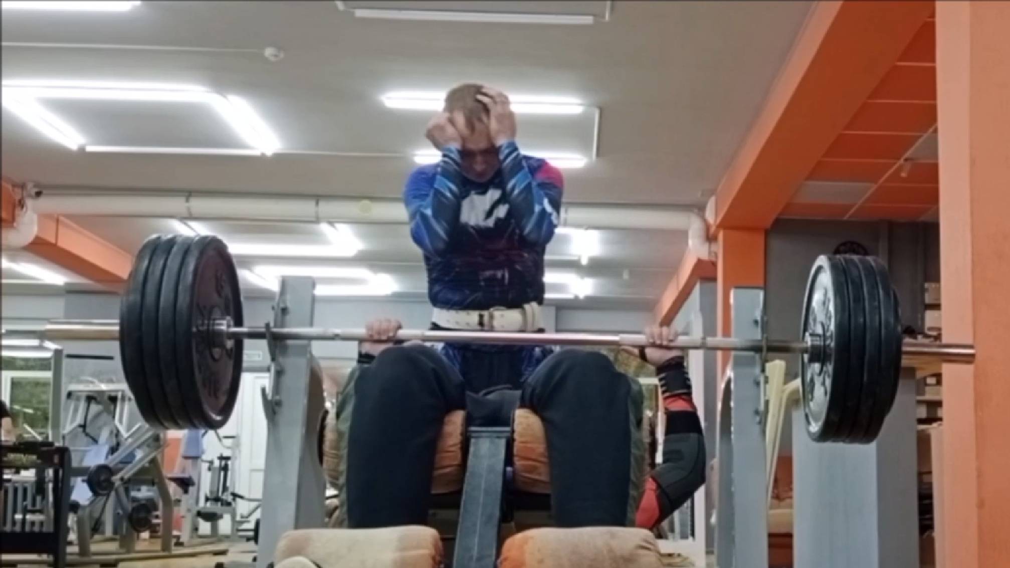 В этот раз снова делаем проходку (повторюсь мы только держим руки на грифе, грубо говоря придерживаем, но не помогаем, психологически этот приём сильно помогает) в спортзале Богатырь, вместе с Олегом. Так же как и в прошлый раз делаю на нижней скамье, только сейчас ко мне решил присоединиться Олег. #жимлёжа #смаев #smaev #пауэрлифтинг #спортзал