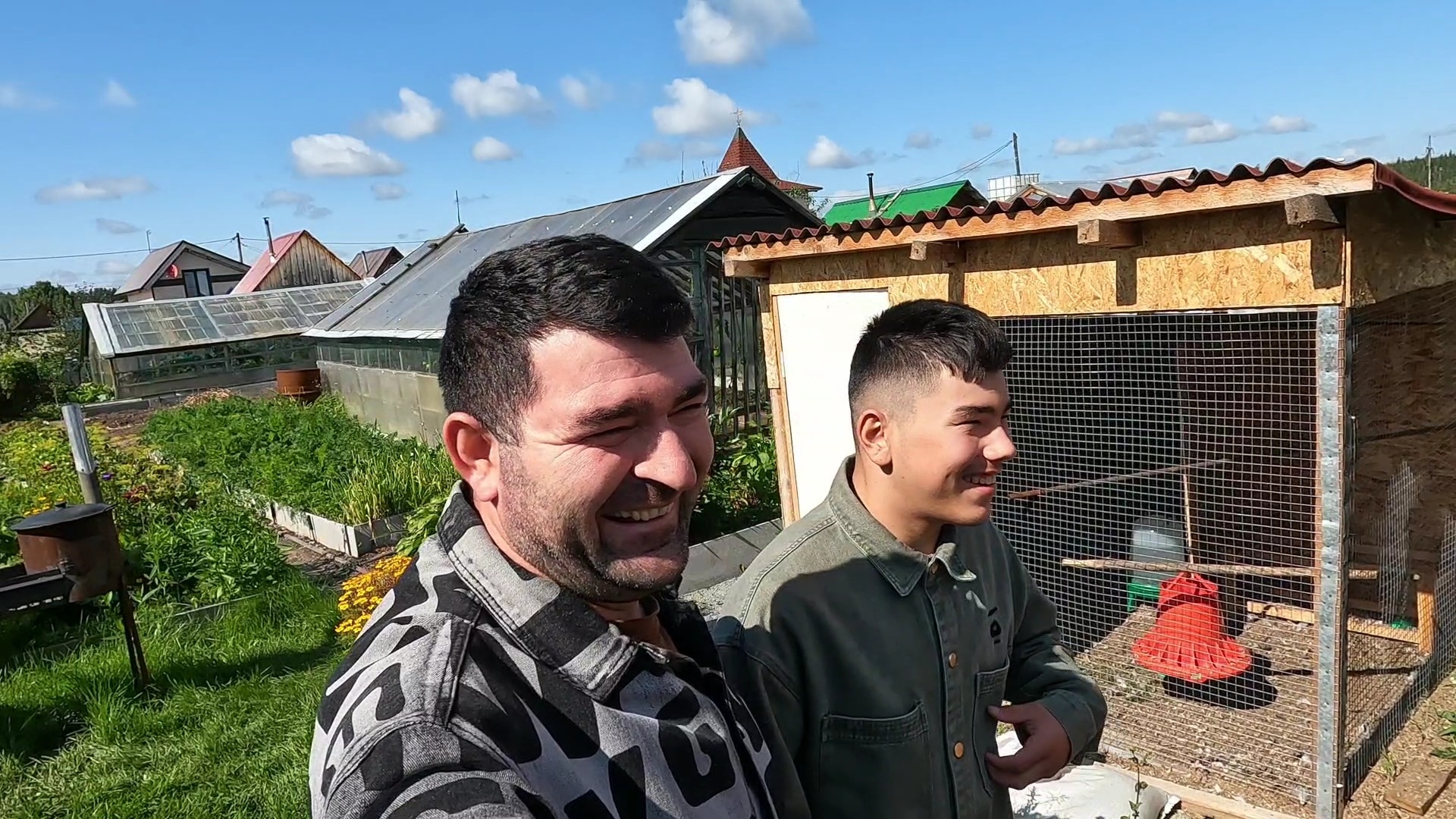 Сегодня только мужская половина нашей семьи работает на даче.