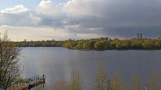 Посадка Airbus A330 в Шереметьево Москва вид с Котовского залива город Долгопрудный|Аэропорт