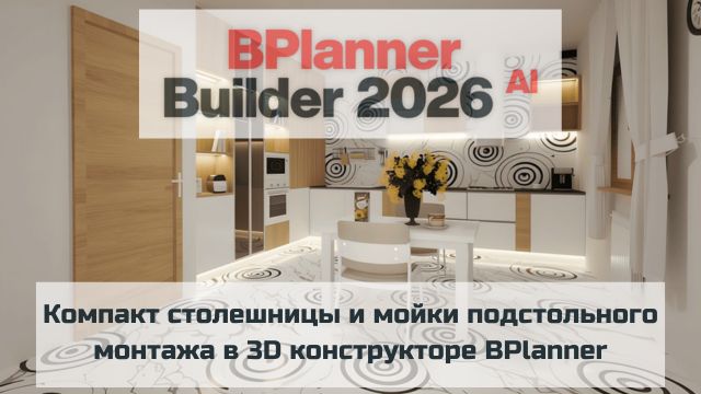 Компакт столешницы и мойки подстольного монтажа в 3D конструкторе BPlanner