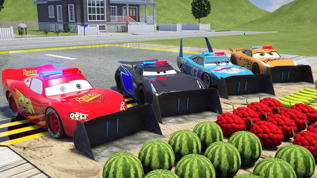 Изучаем цвета и фрукты с помощью машинок Маккуина и грузовиком Мак — Молния Маккуин собирает фрукты