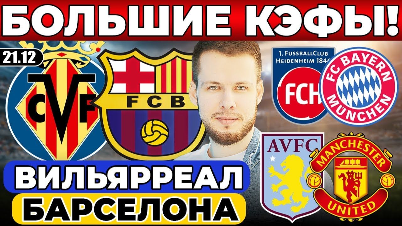 ВИЛЬЯРРЕАЛ - БАРСЕЛОНА ПРОГНОЗ АСТОН ВИЛЛА - МАНЧЕСТЕР ЮНАЙТЕД ОБЗОР ХАЙДЕНХАЙМ - БАВАРИЯ ПРОГНОЗ