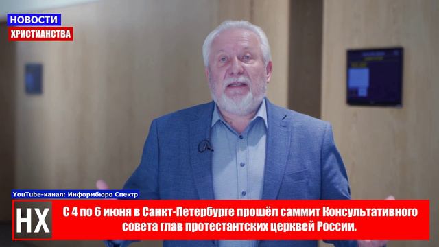 Ежедневно свежие новости из мира Христианства! Будьте в курсе важных событий в мире Христианства вместе с нами! С 4 по 6 июня в Санкт-Петербурге прошёл саммит Консультативного совета глав протестантских церквей России. Темой встречи стало выражение: «В главном — единство, во второстепенном — свобода, во всём — любовь.» Кроме глав протестантских церквей России, участниками стали религиозные и общественные деятели, а так же представители государственной власти. Особенностью мероприятия стало то, что оно было приурочено к юбилейному сотому заседанию Консультативного совета глав протестантских церквей России. Во время встречи участники подвели итоги работы Консультативного совета, обсудили государственно конфессиональные отношения, определили цели и задачи на будущее. Так же в ходе диалога было решено доработать социальную концепцию протестантов России. Программа саммита состояла не только из рабочих сессий и дискуссий, но так же была насыщенна культурной программой: прогулкой на теплоходе, экскурсией и концертом в лютеранской церкви Аннекирхе. Завершился саммит круглым столом по работе Национальной духовной трапезы в 2024 году. Информбюро «Спектр». Санкт-Петербург Ссылка: https://www.youtube.com/watch?v=WJTHXpVL5Wc