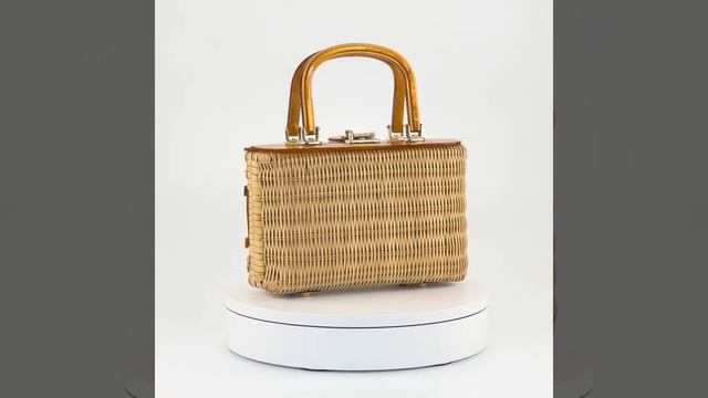 Винтажная сумка-сундучок из соломки и люцита с текстильной подкладкой, 1960 е, Гонконг