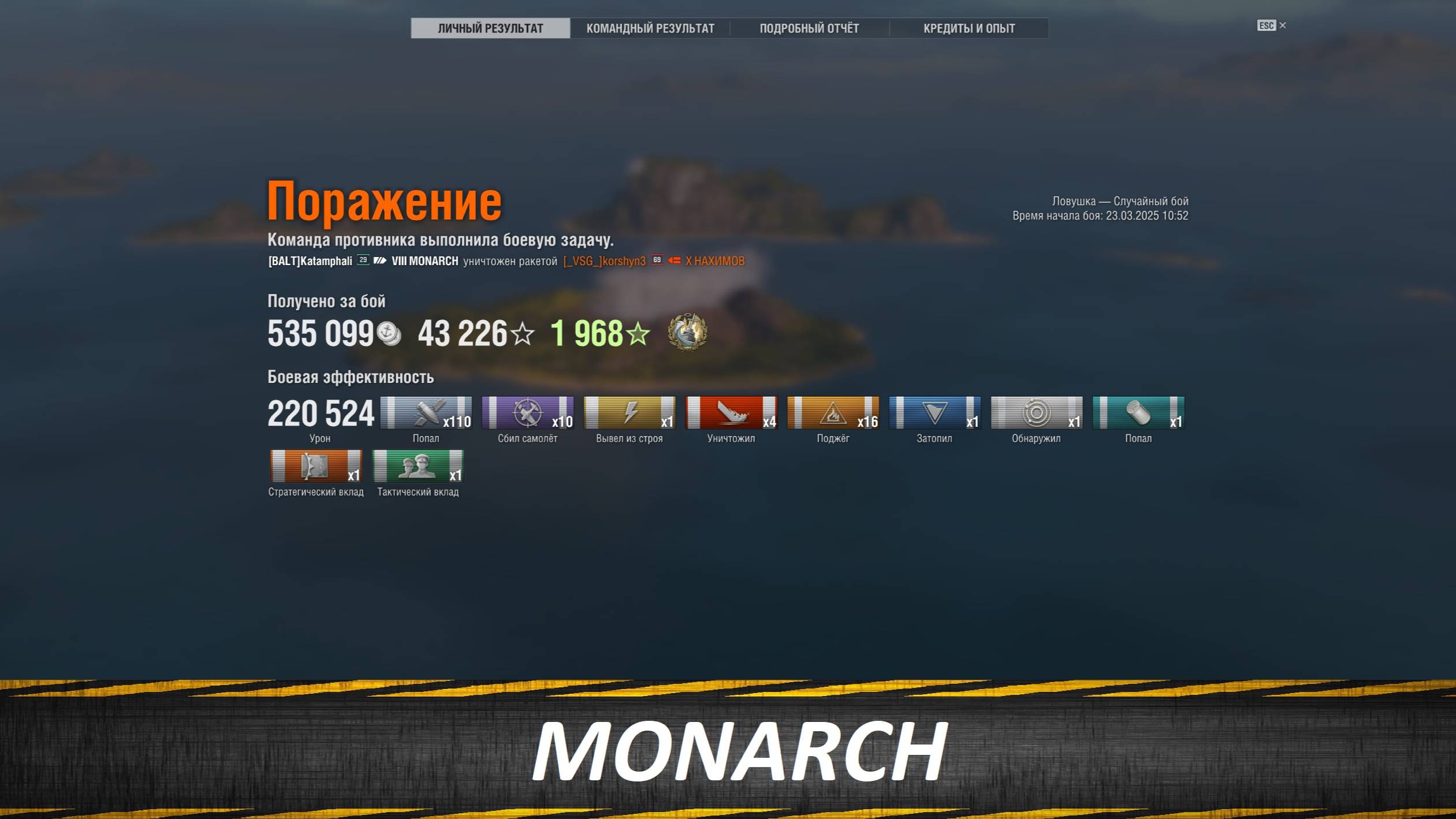MONARCH, 220 524 урона, 4 уничтоженных, 1 награда