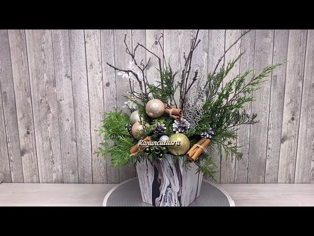 Новогодняя композиция из туи в коробке